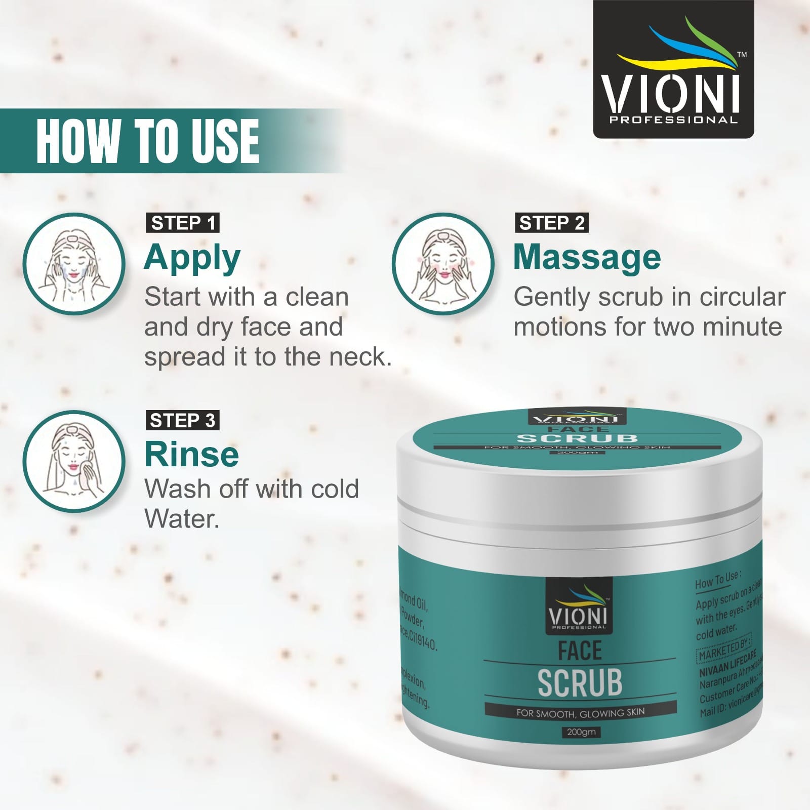 VIONI Face Scrub with Aloe Vera, Coffee Extract & Vitamins – Deep Cleansing & Skin Brightening (200gm)